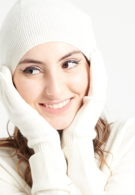 Mitaines unisex en cachemire blanc écru - UNI 3