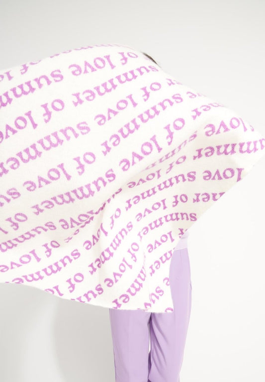 Écharpe femme en cachemire imprimé blanc écru & violet - UNI 7