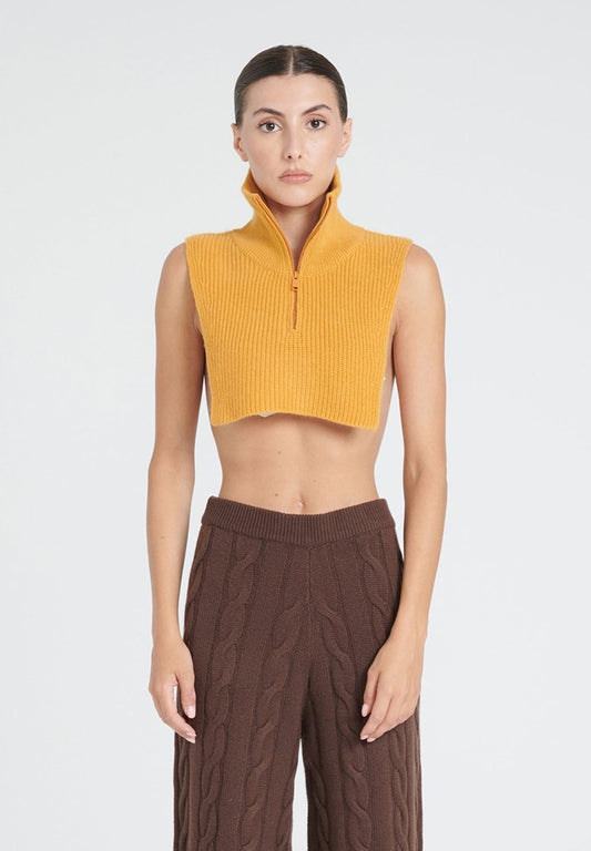 Col montant zippé femme en cachemire 4 fils jaune moutarde - ZAYA 1