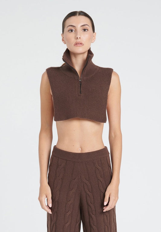 Col montant zippé femme en cachemire 4 fils marron - ZAYA 1