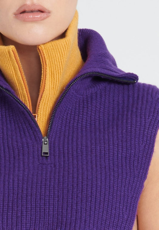Col montant zippé femme en cachemire 4 fils violet - ZAYA 1