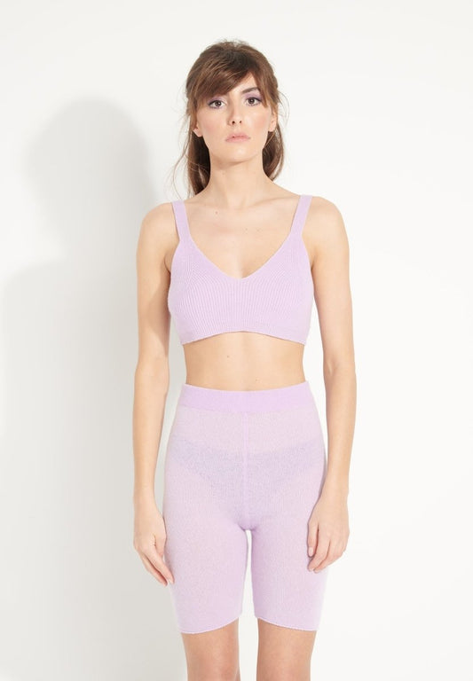 Polo manches courtes femme en cachemire ajouré lilas - AVA 1