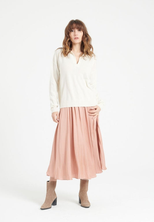 Polo manches longues femme en cachemire blanc écru - MIA 3