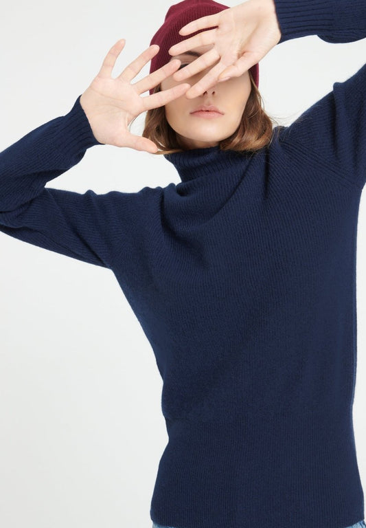 Pull col roulé femme en cachemire bleu marine - LILLY 21