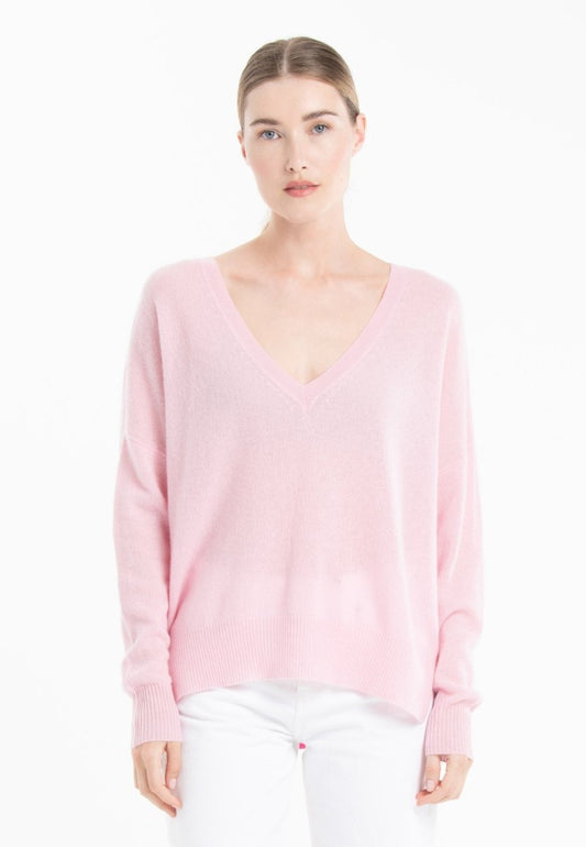 Pull col V femme en cachemire rose baby & rose indien - NAMI 23