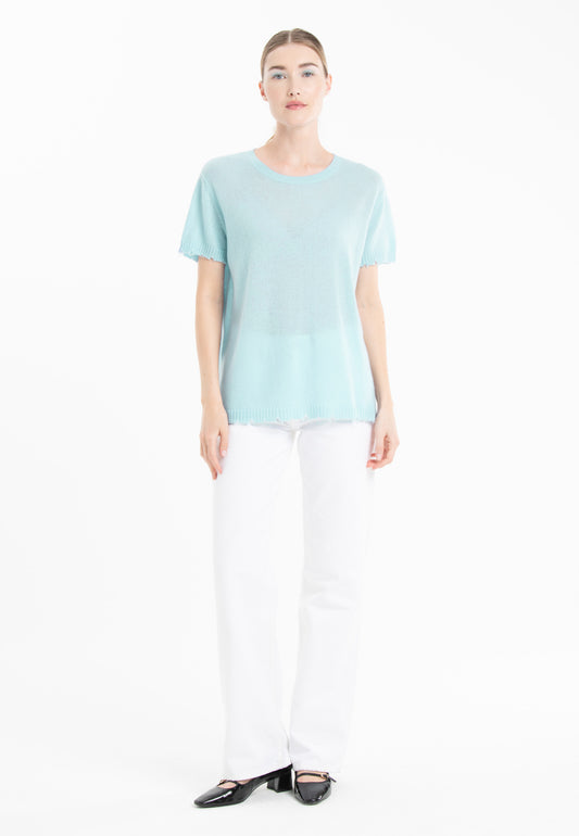 T-shirt col rond femme en cachemire déjaugé turquoise - AVA 6