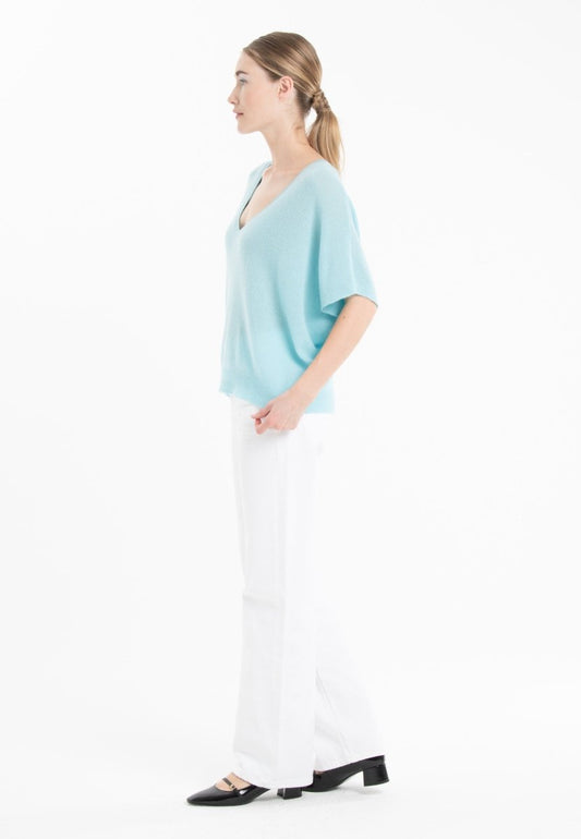 T-shirt col rond femme en cachemire déjaugé bleu ciel - AVA 6
