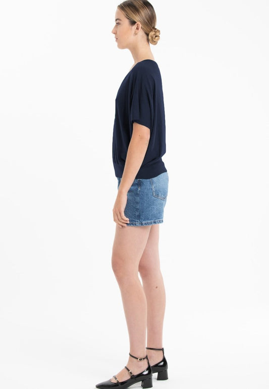 Pull col V à manches chauve souris femme en cachemire & laine ultrafin bleu marine - KELLY 6