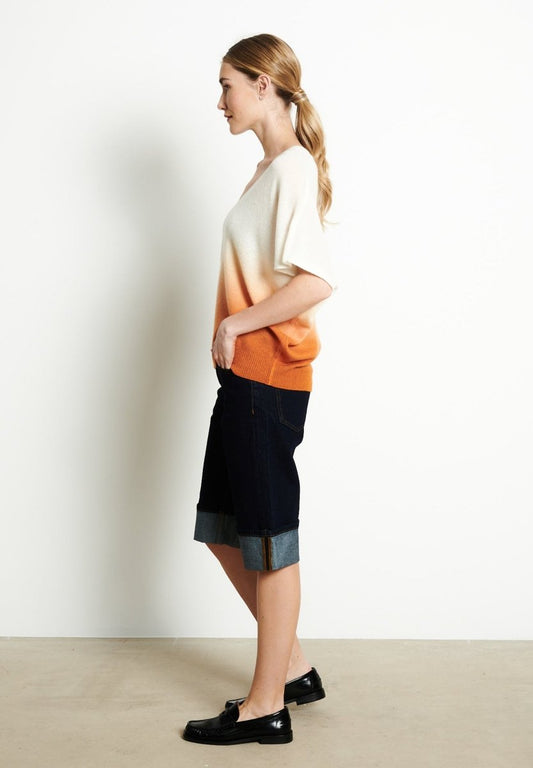 Pull col V manches chauve souris femme en cachemire tie & dye beige clair & beige foncé - RIA 7B