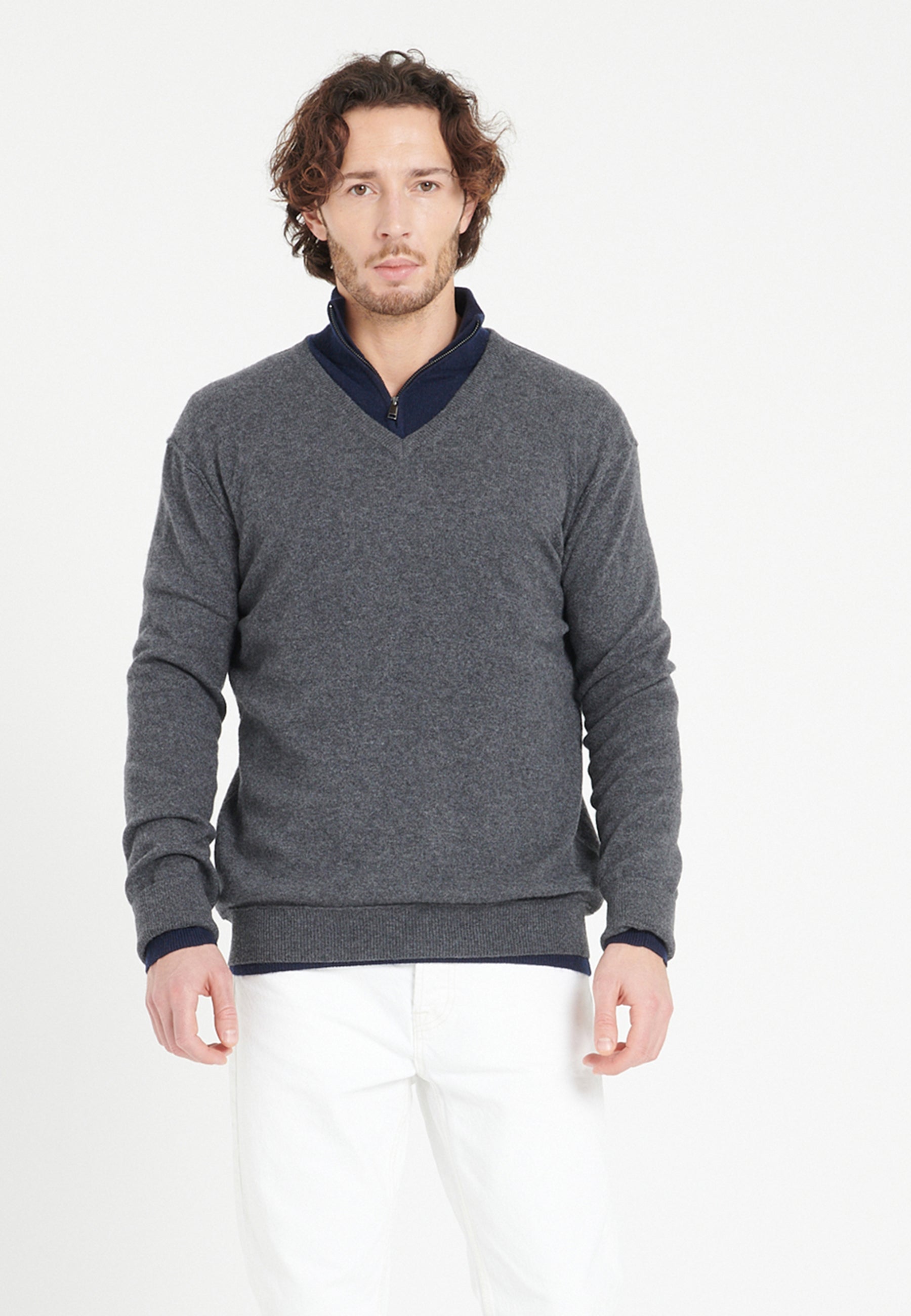Anthrazitgrauer Herren-Kaschmirpullover mit V-Ausschnitt - LUKE 11