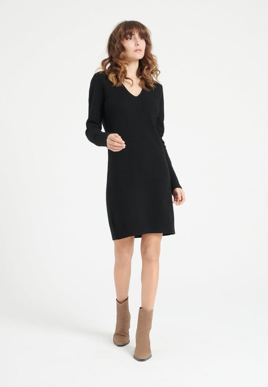 Women's navy blue cashmere V-neck dress - LILLY 10