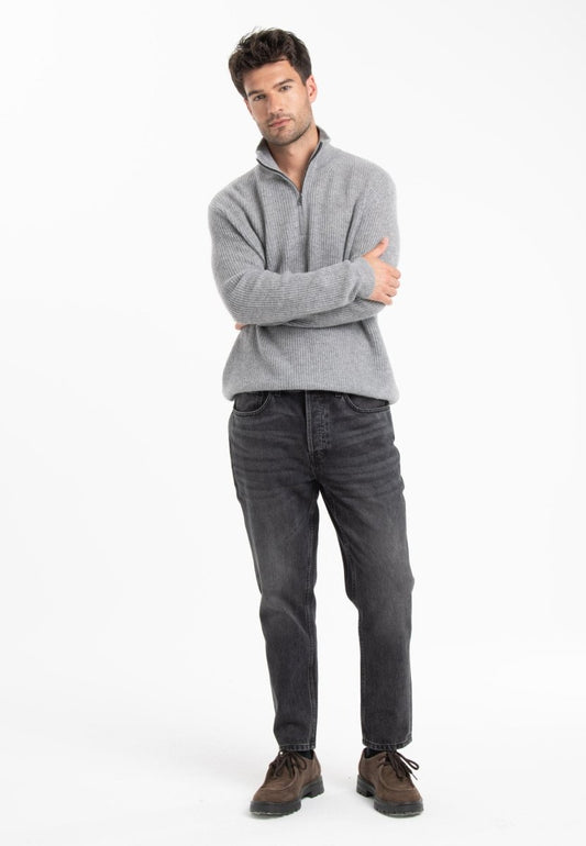 Men's light gray cashmere trucker sweater - GABI 1
