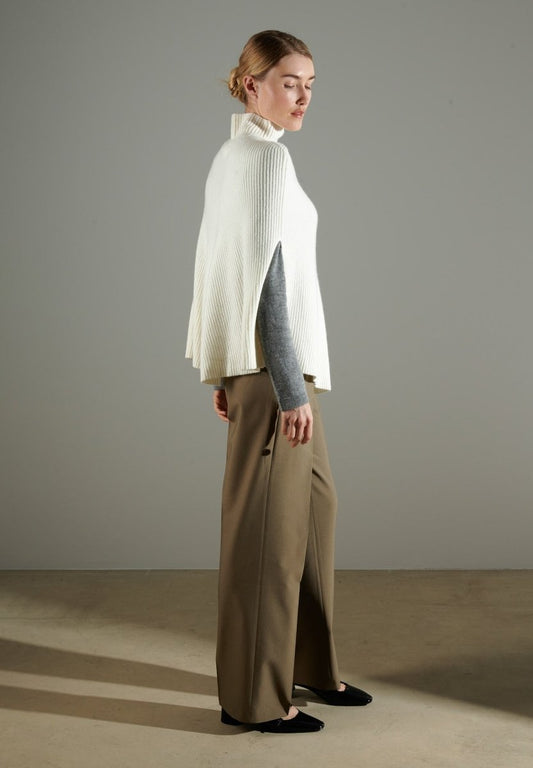 Women's 4-ply cashmere poncho in ecru white - NAMI 10