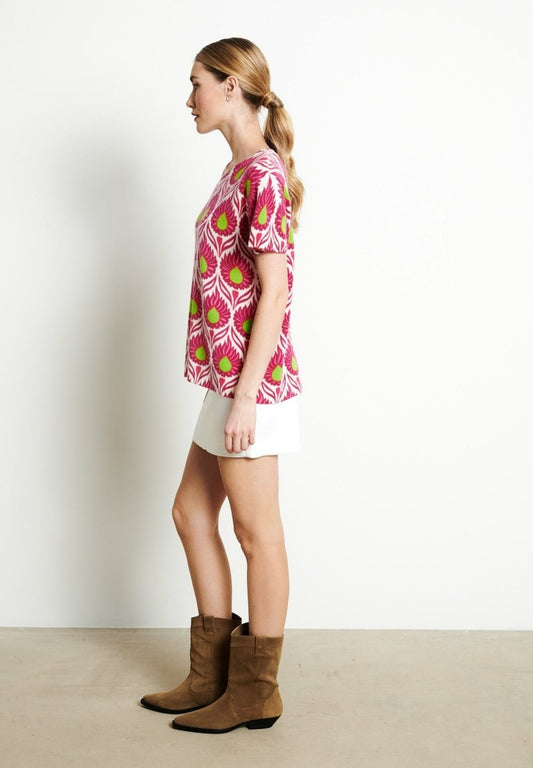 Women's Indian pink/print cashmere round neck sweater - NAMI 19