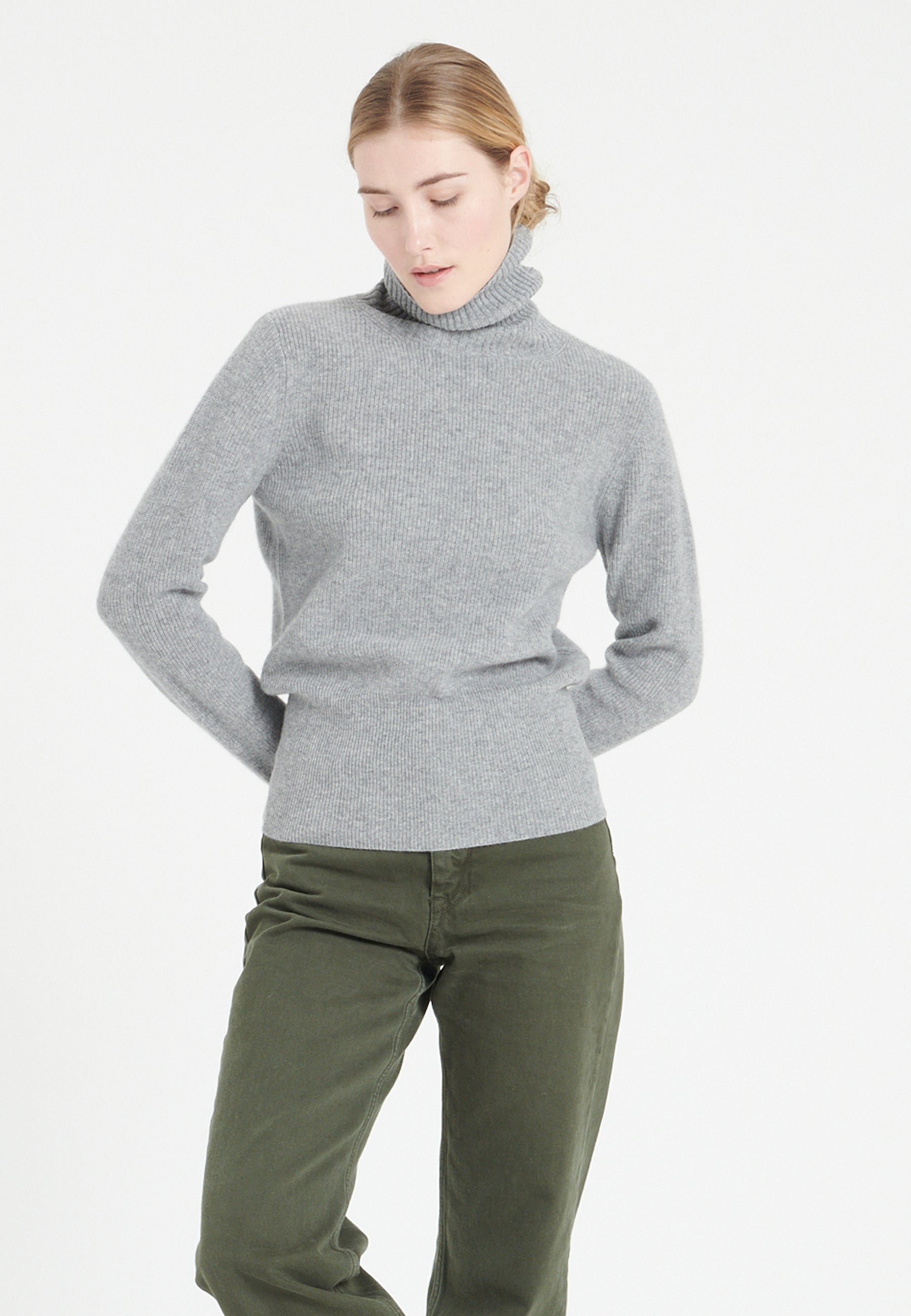 Women's light gray cashmere turtleneck sweater - LILLY 21