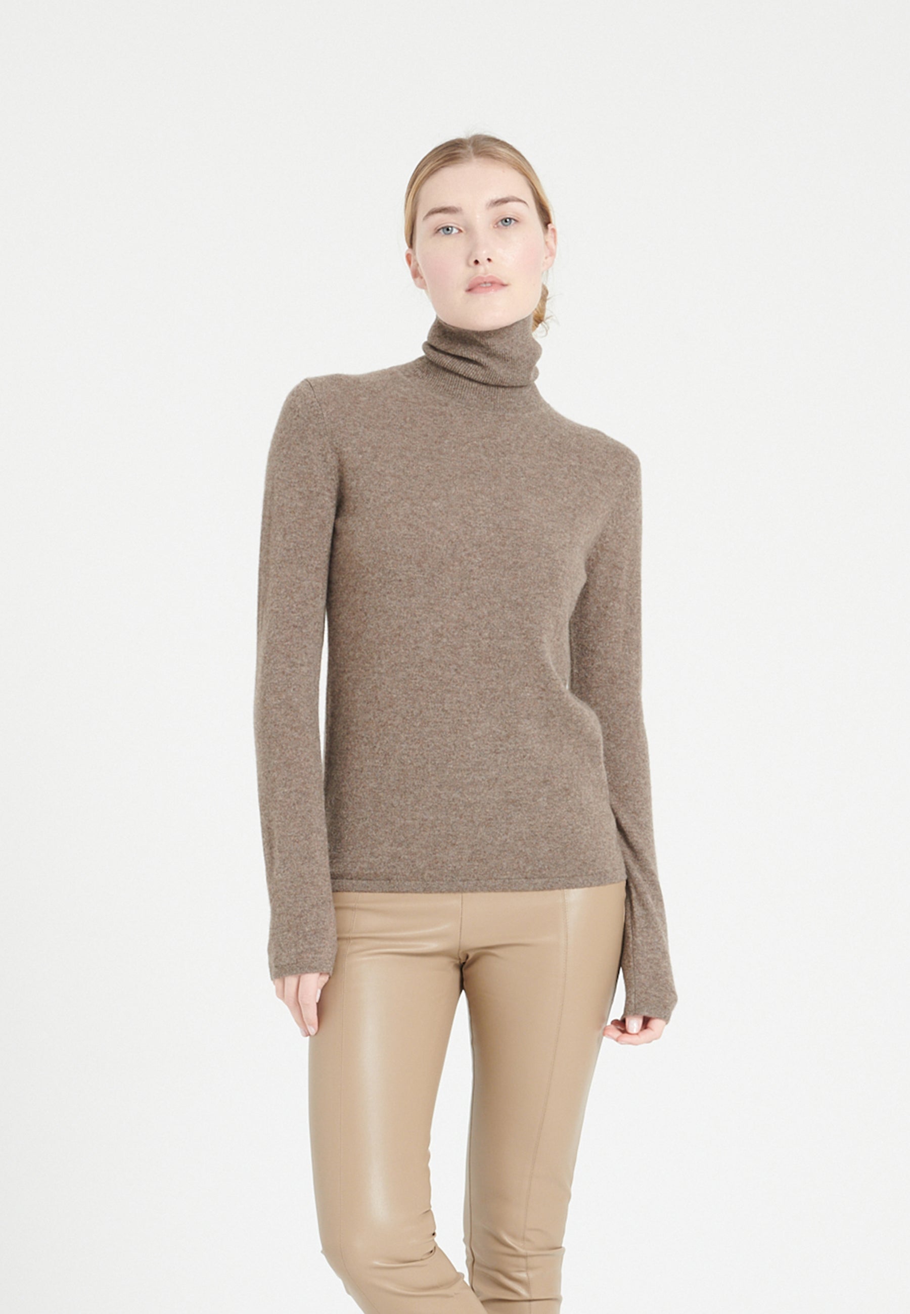 Women's taupe cashmere turtleneck sweater - LILLY 3