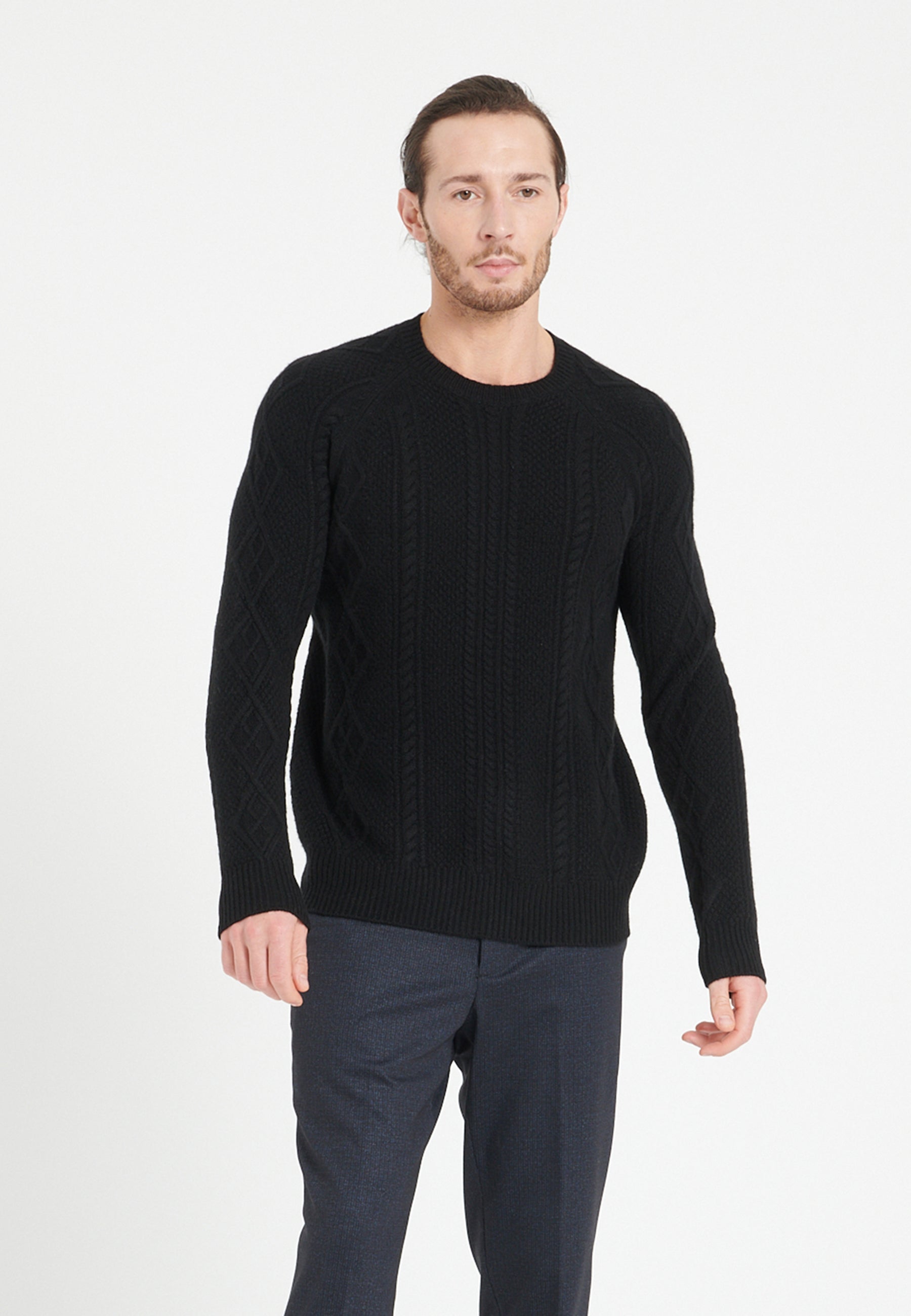 Men's 6-ply black cashmere crew neck sweater - ZACH 1